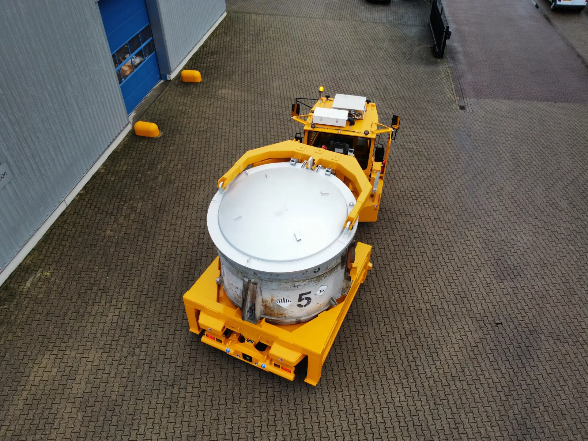 Designed for carrying the ladle and pallet on the lifting bed of the trailer part of the vehicle. The lifting bed is mechanically locked for safe transportation. Integrated hydraulic cover means maximum protection of aluminium.